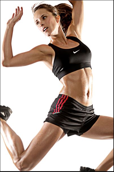 Atwell doing a fitness shot wearing Nike sportswear.