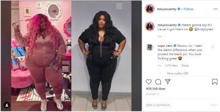 Tokyo Vanity shares a picture showing her body change on her Instagram.