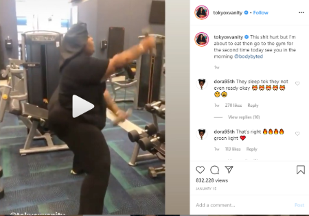 Tokyo Vanity's Instagram video of her working out in the gym.